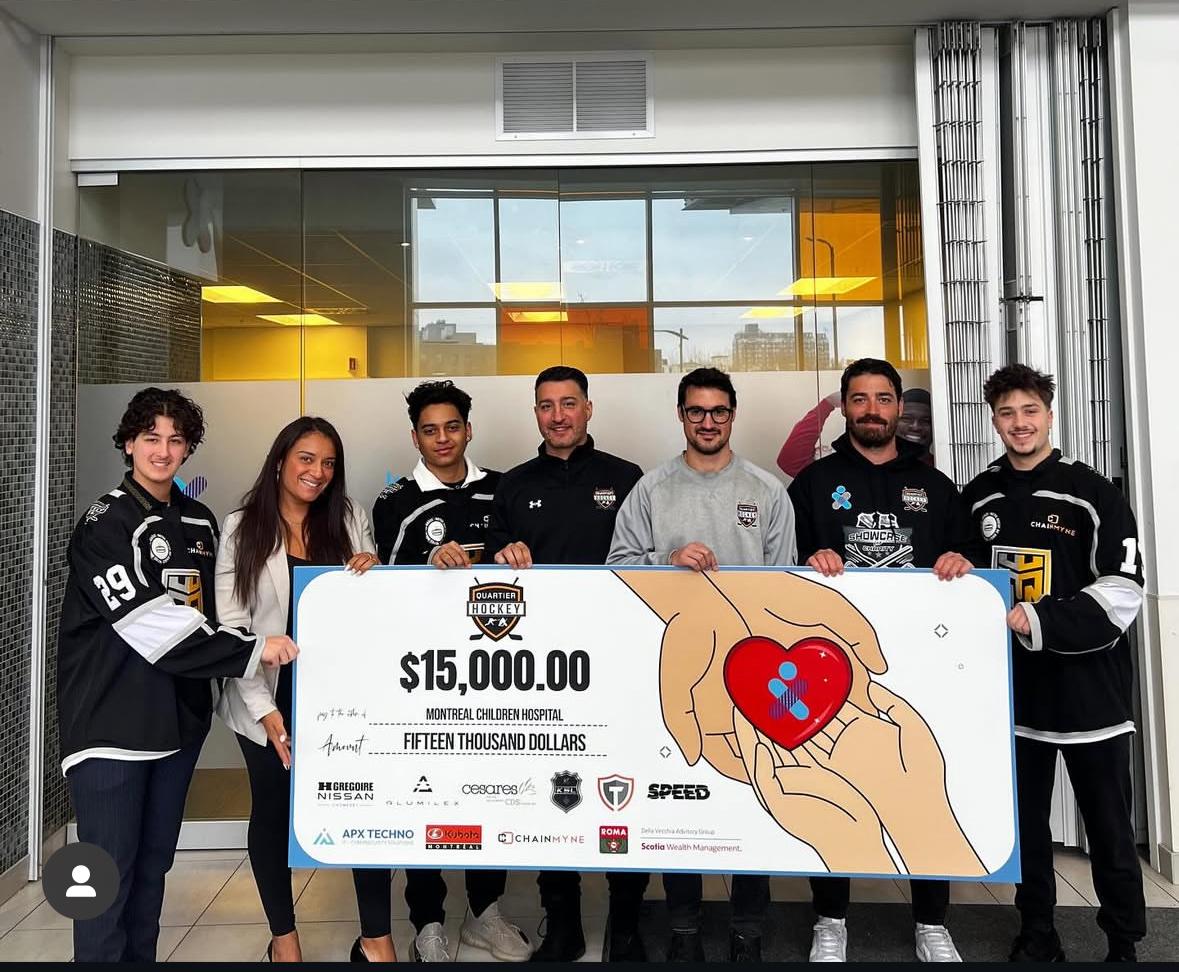 Contributed to a fundraiser for the Montreal Children's Hospital, Athena Shield Shelter for Battered Women, and our local fire department., occasionaly hoping on the ice with trainers to train our future stars.